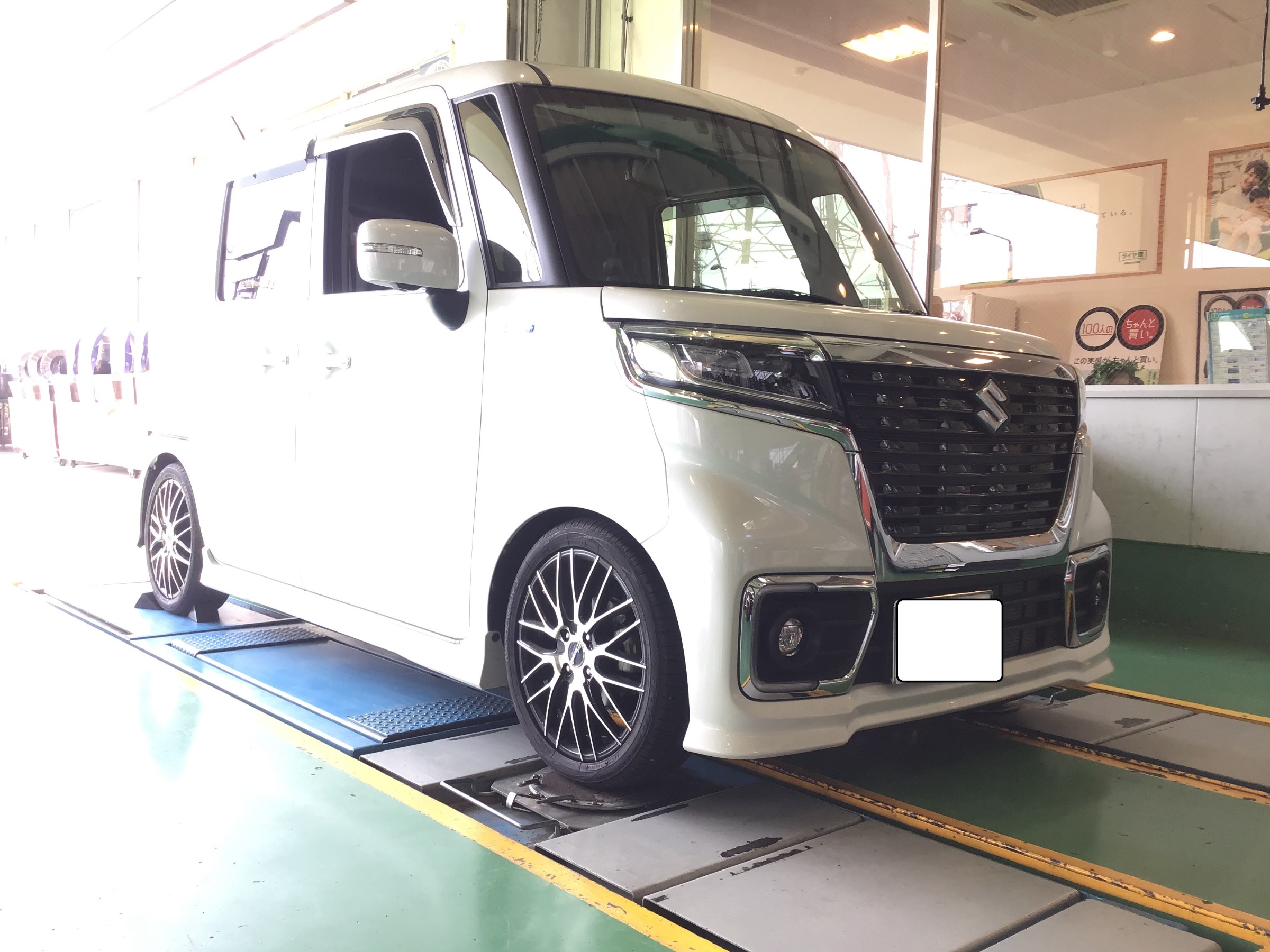 スズキ スペーシアカスタム Mk53s アライメント調整 スズキ スペーシアカスタム その他 タイヤ ホイール関連 4輪トータルアライメント調整 サービス事例 タイヤ館 綾瀬 神奈川県のタイヤ カー用品ショップ タイヤからはじまる トータルカーメンテナンス
